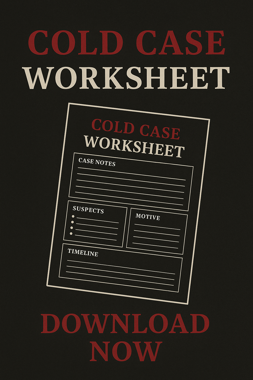 Whether you’re following a decades-old disappearance or dissecting your favorite true crime series, this worksheet helps you organize suspects, evidence, motives, and theories just like a real investigator.